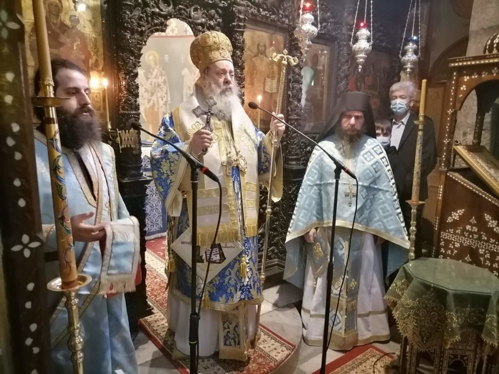 Ο Θεοφιλέστατος κ. Χρύσανθος ιερούργησε στο Καθολικό της Ιεράς Μονής την Κυριακή Δ΄ Νηστειών (Οσίου Ιωάννου της Κλίμακος) 26 Μαρτίου, πλαισιούμενος από τον Άγιο Καθηγούμενο της Μονής Αρχιμ. π. Γερμανό Γιαντσίδη και τους πατέρες της Ιεράς Αδελφότητος.