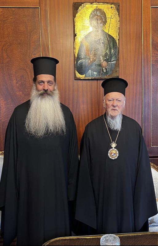 Την ευγνωμοσύνη τόσο του ιδίου όσο και του Ιερού Κλήρου, των Αρχών και του πιστού λαού της Φθιώτιδος προς την Α.Θ.Π., τον Οικουμενικό Πατριάρχη κ.κ. Βαρθολομαίο για την πρόσφατη προσκυνηματική επίσκεψη του στην Ιερά Μονή Κοιμήσεως Θεοτόκου Οσίου Αγάθωνος κατέθεσε ευλαβώς ο Σεβασμιώτατος Μητροπολίτης Φθιώτιδος κ. Συμεών επισκεπτόμενος το πάνσεπτο Οικουμενικό Πατριαρχείο.