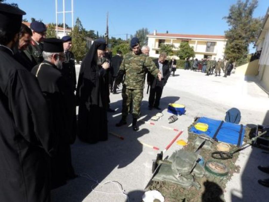 Μετά το πέρας της Τελετής ο Σεβασμιώτατος Μητροπολίτης Κορίνθου Διονύσιος μαζί με τον Διευθυντή του Μηχανικού Ταξίαρχο κ. Αντώνιο Κονδύλη ξεναγήθηκαν από τον Διοικητή της Σχολής, Ταξίαρχο κ. Μηνά Παπαδάκη στην υπαίθρια έκθεση εξουδετέρωσης πολεμικών εκρηκτικών μηχανισμών και συζήτησαν σε πολύ θερμό κλίμα, το οποίο εκφράζει και την αγαστή συνεργασία της Ι. Μητροπόλεως με την Σχολής Μηχανικού.