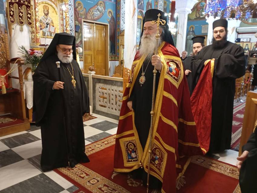 Από την πλευρά Του, ο Σεβασμιώτατος αφού επεσήμανε στο κήρυγμά Του ότι ο μεγαλύτερος ευεργέτης όλων των ανθρώπων είναι ο Κύριος Ιησούς Χριστός, με αφορμή την απόφαση της Ιεράς Συνόδου, όπου την 11η Ιανουαρίου εκάστου έτους γίνεται το μνημόσυνο των ευεργετών των Ιερών Ναών, βράβευσε μετά από πρόταση του Εκκλησιαστικού Συμβουλίου τους κ. Βασίλειο Λαμπαδά και κ. Περικλή και κα. Σμαράγδα Πασχαλίδου, οι οποίοι προσέφεραν μεγάλα χρηματικά ποσά για την αποπεράτωση της αγιογραφίας του Ιερού Ναού.
