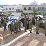 Της εξοδίου ακολουθίας, η οποία τελέσθηκε στο Ναό του αγίου Δημητρίου Κερατέας προέστη ο δάσκαλος και πνευματικός του πατέρας, Μητροπολίτης Θερμοπυλών Ιωάννης, συμπαραστατούμενος από δεκάδες κληρικών γνωρίμων του εκλιπόντος, αλλά και συναδέλφων του από τον Ελληνικό Στρατό. Κατά την εξόδιο και την ταφή αποδόθηκαν όλες οι προβλεπόμενες στρατιωτικές τιμές σε εν ενεργεία αξιωματικό και εκφωνήθηκαν επικήδειοι από τον εντεταλμένο αξιωματικό, την διευθύνουσα του Νοσοκομείου ΝΙΜΤΣ και τον Ιεροψάλτη του Νοσοκομειακού Ναού. Συγκινητικούς επικήδειους εξεφώνησαν και δύο από τα κατά σάρκα ανίψια του εκλιπόντος, ο Σωτήριος Μπλάνης και η φέρουσα το όνομα του Δήμητρα Μπλάνη, καθώς και ο Μητροπολίτης Ιωάννης, ο οποίος περιέγραψε τον χαρακτήρα του νεαρού Ιεροσπουδαστού της Ριζαρείου, που αγάπησε τον άγιο Νεκτάριο και εντρύφησε στην ζωή του, αξιούμενος να ανεγείρει και ναό προς τιμήν του. Ο Μητροπολίτης μίλησε για τον άνθρωπο που αγάπησε όλους και πρόσεξε πολλούς, αλλά δεν έκαμε το ίδιο και για τον εαυτό του. Ο μακαριστός, μετά την εγκύκλιο εκπαίδευση την οποία έλαβε στην Κερατέα, εισήλθε με εισαγωγικές εξετάσεις στην Ριζάρειο Εκκλησιαστική Σχολή στην οποία απέκτησε την απαιτούμενη γνώση δίπλα σε καταξιωμένους καθηγητές, αλλά και τον Σχολάρχη μακαριστό Αρχιμανδρίτη Νεκτάριο Κοτζιά. Αποφοίτησε το 1983 και κατόπιν εξετάσεων εισήχθη στην Ανωτέρα Εκκλησιαστική Σχολή Αθηνών, από όπου αποφοίτησε το 1986.