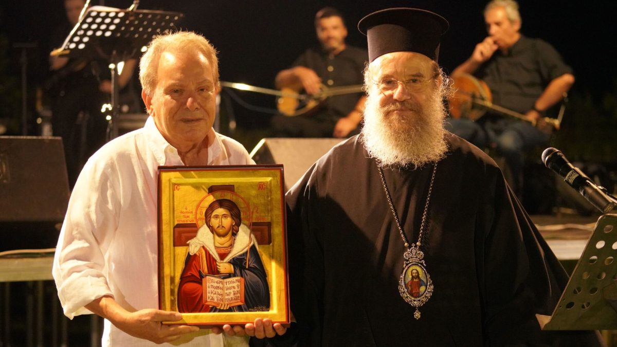 Η πανέμορφη βραδιά ξεκίνησε με προσφώνηση του Σεβασμιωτάτου Μητροπολίτου Ιερισσού κ. Θεοκλήτου προς τον τραγουδιστή, που θυμήθηκαν μαζί μέρες ευλογημένες στο Μοναστήρι της Παναγίας της Έλωνας Λεωνιδίου, με Λειτουργό τον τότε Αρχιμανδρίτη Θεόκλητο Αθανασόπουλο και Ψάλτες στο Αναλόγιο της Μονής τον Μανώλη Μητσιά και την μακαριστή Ηγουμένη της Μονής Λαυρεντία Μοναχή. Ο Σεβασμιώτατος ευχαρίστησε τον πολυτάλαντο τραγουδιστή μας για την αφιλοχρήματη παρουσία του και προσφορά των εσόδων της βραδιάς για τη στήριξη του Ιερού Ναού της Αγίας Παρασκευής των Δουμπιών που γιόρταζε. Προς τιμήν του Μανώλη Μητσιά ο Δεσπότης του προσέφερε μία Αγιογραφημένη Βυζαντινή Εικόνα του Κυρίου μας ως Καλού Ποιμένος, μιας και ο Μητσιάς φέρει το όνομα Εμμανουήλ, δηλαδή του Χριστού μας το όνομα. Συγκινημένος ο τραγουδιστής ευχαρίστησε τον Επίσκοπό μας και ακολούθησε προσφώνηση από τον Δήμαρχο Πολυγύρου κ. Αστέριο Ζωγράφο, ο οποίος έπλεξε το εγκώμιο του λαϊκού μας ερμηνευτή…