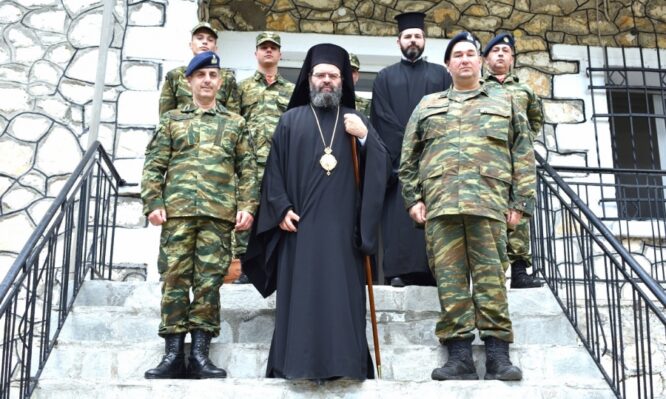 Τήν Παρασκευή τῆς Διακαινησίμου, 25η Ἀπριλίου ἐ. ἒ., ὁ Σεβασμιώτατος ἐπισκέφθηκε τό ἱστορικό φυλάκιο τῆς Νυμφαίας, μέ τήν παρουσία τοῦ Διοικητοῦ τῆς 29ης Μ/Π ΤΑΞΠΖ Ταξιάρχου κ. Ἀδαμαντίου Μαυροειδῆ καί συνομίλησε μὲ τοὺς ὑπηρετοῦντες ὁπλῖτες, συνοδεύοντας μὲ δῶρα τὶς Πασχάλιες εὐχές του γιὰ ὑγεία καὶ δύναμη σέ ὃλους.