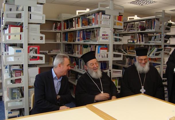 Αμέσως μετά την ομιλία ο διευθυντής και οι καθηγητές ξενάγησαν στη βιβλιοθήκη του σχολείου τον μητροπολίτη Χαλκίδος κ. Χρυσόστομο και το δήμαρχο Ερέτριας κ. Βασίλη Βελέντζα και τους προσέφεραν κεράσματα. Στη συζήτηση που ακλούθησε ο σεβασμιότατος, ο δήμαρχος και οι εκπαιδευτικοί αντήλλαξαν απόψεις σχετικά με την εξέλιξη της τεχνολογίας και το ρόλο που μπορεί να διαδραματίσει στην εκπαίδευση καθώς και για την προστασία της Ελληνικής γλώσσας.