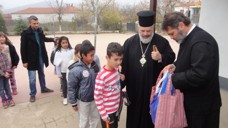 Ο κ. Δαμασκηνός, κατά την επίσκεψή του στα σχολεία, μοίρασε στους μαθητές τους σχολικά είδη, προσφορά της Μ.Κ.Ο. Αποστολή, όπως ακριβώς έκανε και προ εβδομάδων σε όλα τα άλλα δημοτικά σχολεία της περιοχής της δικαιοδοσίας της μητρόπολης. Τα σχολικά είδη διενεμήθησαν αδιακρίτως θρησκευτικής ταυτότητας σε χριστιανόπαιδες και μουσουλμανόπαιδες.