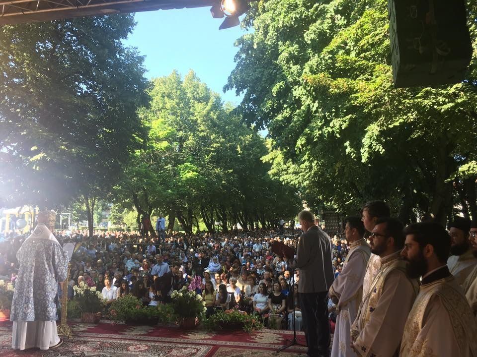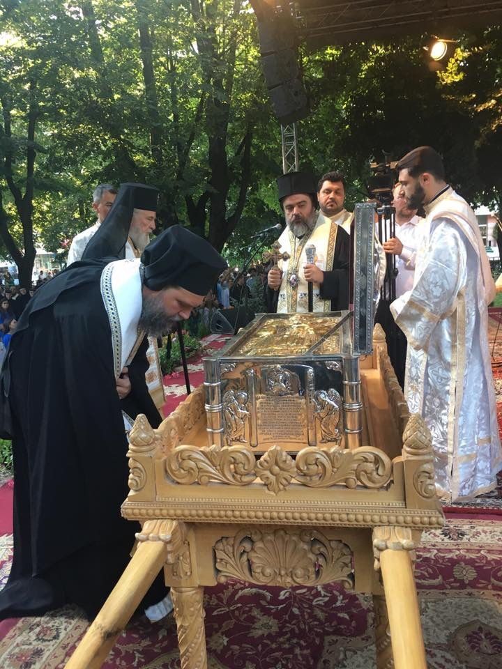 Στον Πανηγυρικό Εσπερινό και στην Θεία Λειτουργία προεξήρχε ο Σεβασμιώτατος Μητροπολίτης Σμύρνης κ. Βαρθολομαίος, μετά του Σεβασμιωτάτου Μητροπολίτου μας κ. Γαβριήλ, του οικείου Ποιμενάρχου κ. Νήφωνος, Ιεραρχών της Εκκλησίας της Ρουμανίας, παρουσία της Πρωθυπουργού της Ρουμανίας, Υπουργών της Ρουμανικής κυβερνήσεως και χιλιάδων προσκυνητών.