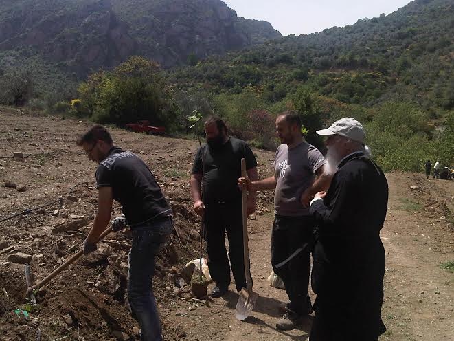 Ο μητροπολίτης, μαζί με κληρικούς και λαϊκούς, βρέθηκε χθες στα κτήματα της μονής, με σκοπό να βοηθήσει στις εργασίες αλλά και στην τοποθέτηση νέου υδραγωγείου στη μονή, το οποίο θα αρδεύει και θα υδρεύει τα κτήματά της.