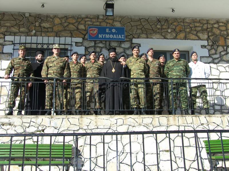 Ο μητροπολίτης, αφού έγινε δεκτός από τον Ταξίαρχο της 29ης Ταξιαρχίας Πεζικού, συναντήθηκε με τους στρατεύσιμους νέους.
