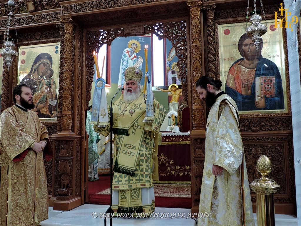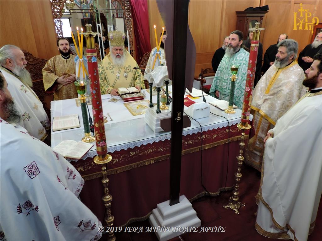 Την Δευτέρα 18 Φεβρουαρίου 2019, το πρωΐ, στον Ενοριακό Ιερό Ναό Αγίου Μαξίμου Γραικού Άρτης, τελέσθηκε Αρχιερατική Θεία Λειτουργία από τον Σεβασμιώτατο Μητροπολίτη Νεαπόλεως και Σταυρουπόλεως κ. Βαρνάβα, συμπροσευχομένου του Σεβασμιωτάτου Μητροπολίτου Άρτης κ. Καλλινίκου.