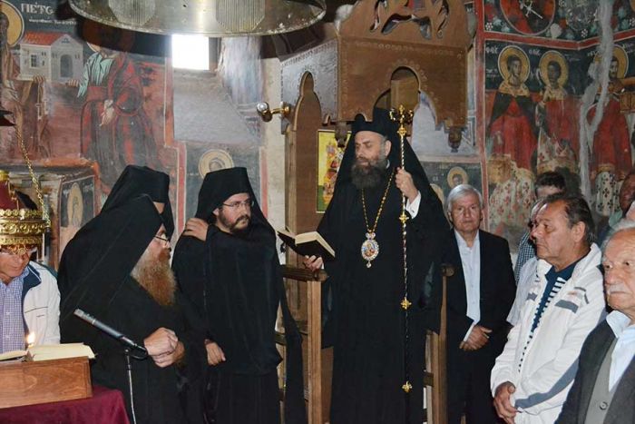 Μετά το πέρας της ακολουθίας, ο μητροπολίτης κατευθύνθηκε στον προαύλιο χώρο της μονής όπου συνομίλησε με τους προσκυνητές.