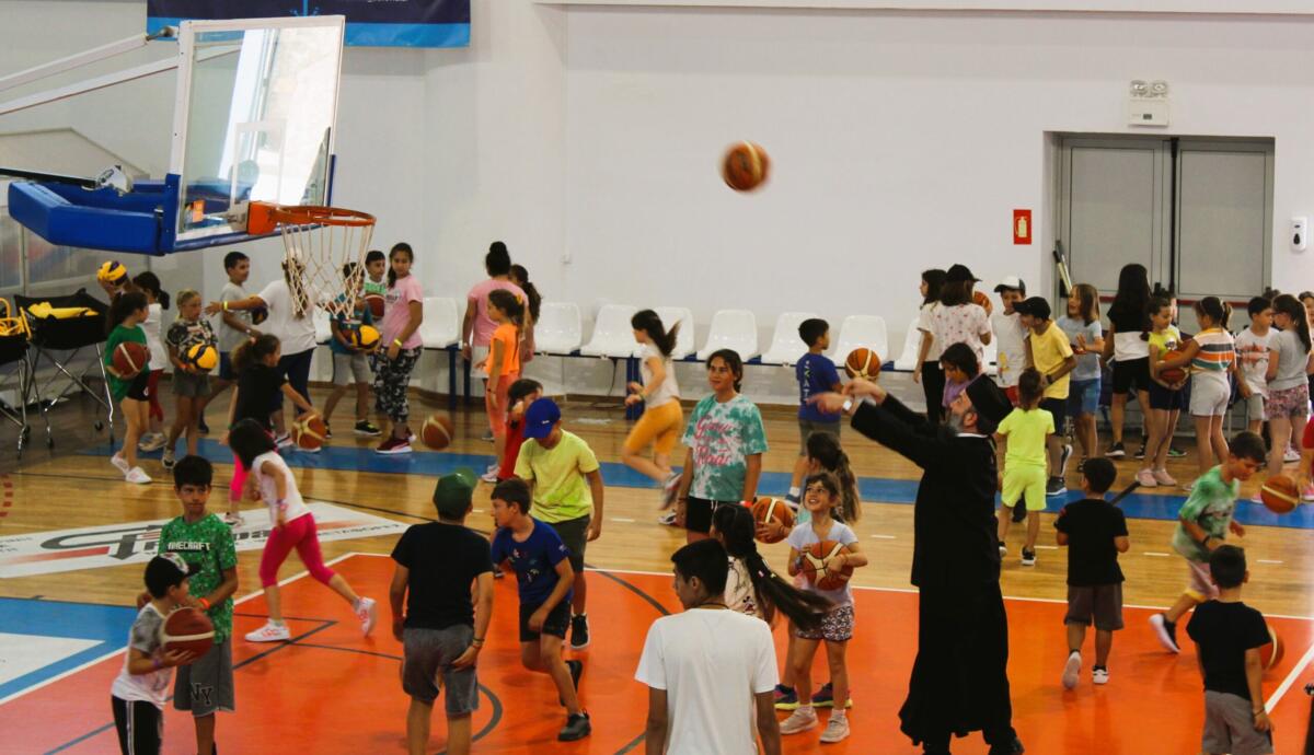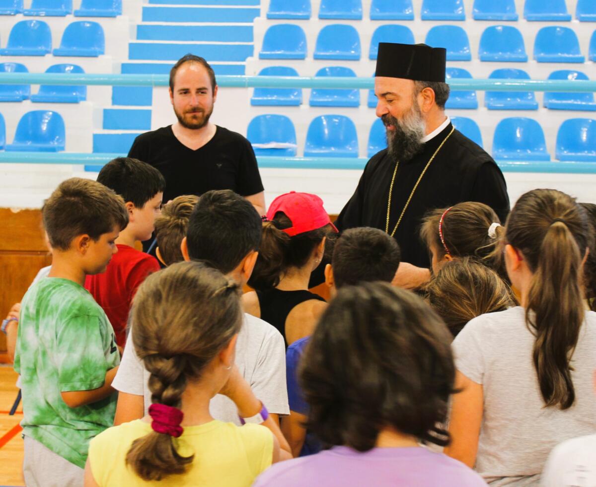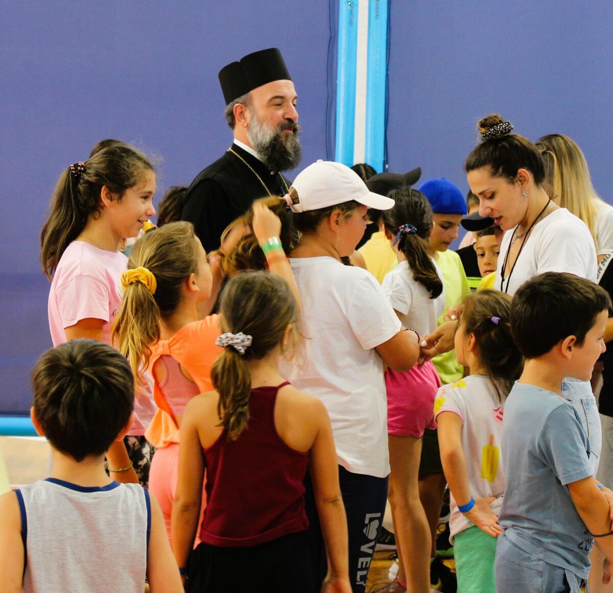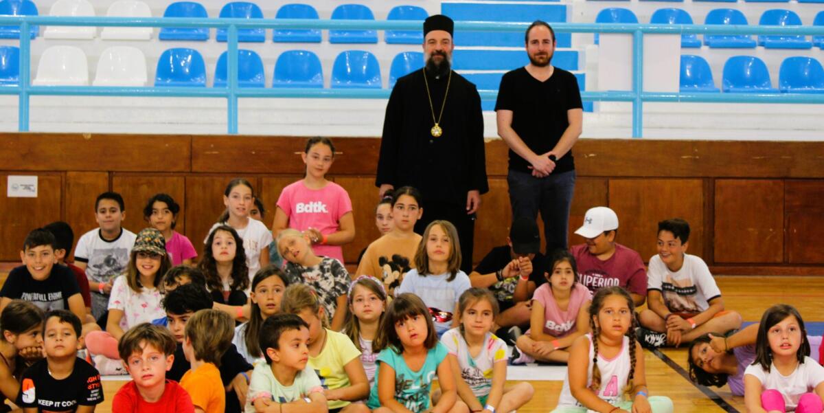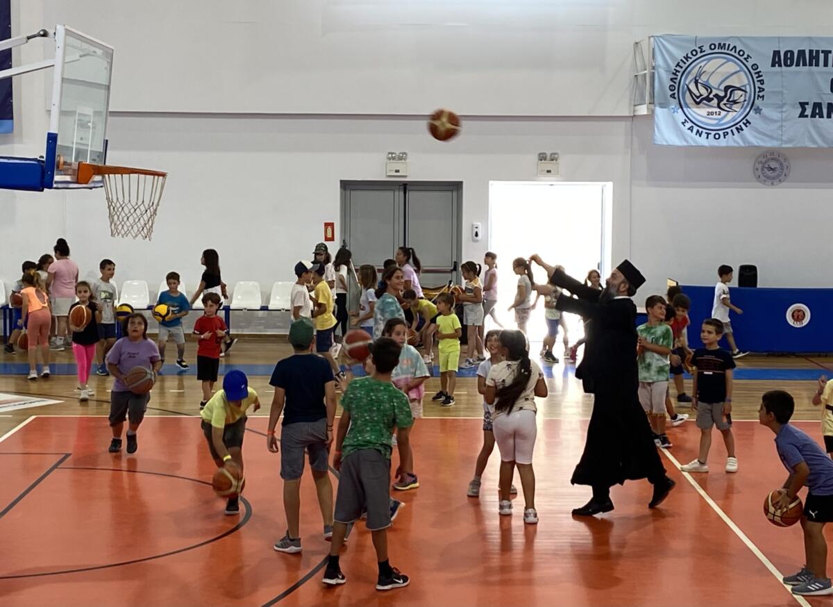 Ο Μητροπολίτης Θήρας μαζί με τα παιδιά, στο Κλειστό Γυμναστήριο Σαντορίνης (ΦΩΤΟ)