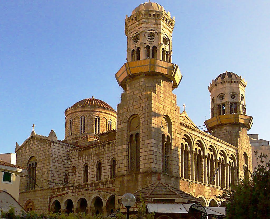 Με πρωτοστατούντα τον Σπύρο Παυλίδη, ιδιοκτήτη της σοκολατοποιίας στην οδό Αιόλου, απέναντι ακριβώς από τον ναό (επί της οδού Αγίου Μάρκου υπήρχε και άλλη επιχείρηση με την επωνυμία «Παυλής», που προφανώς μπορεί να είναι της ίδιας οικογενείας»), αγοράστηκαν και οικόπεδα γύρω από τον ναό, που θεμελιώθηκε το 1863 σε σχέδια του Δημητρίου Ζέζου, εισηγητή νέου ρυθμού, που συνδύαζε τη βυζαντινή αρχιτεκτονική με τον αρχαίο ελληνικό ρυθμό.