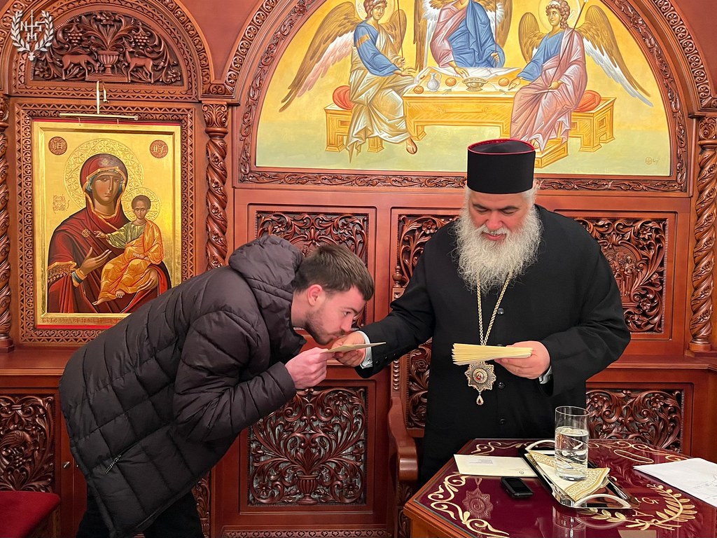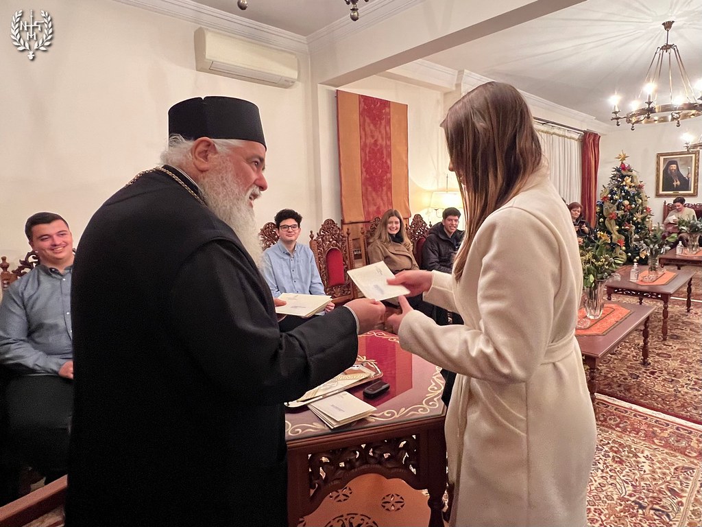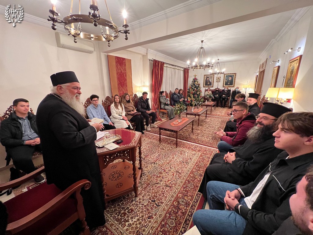 Ο Σεβασμιώτατος υποδέχτηκε με εγκαρδιότητα στο Επισκοπείο την Τετάρτη 28 Δεκεμβρίου 2022, νέους και νέες, παιδιά κληρικών και απόφοιτους του Εκκλησιαστικού Λυκείου της Ιεράς Μητροπόλεως, οι οποίοι πέτυχαν την εισαγωγή τους στα Ανώτατα Εκπαιδευτικά Ιδρύματα της χώρας κατά τις Πανελλαδικές Εξετάσεις του 2022.