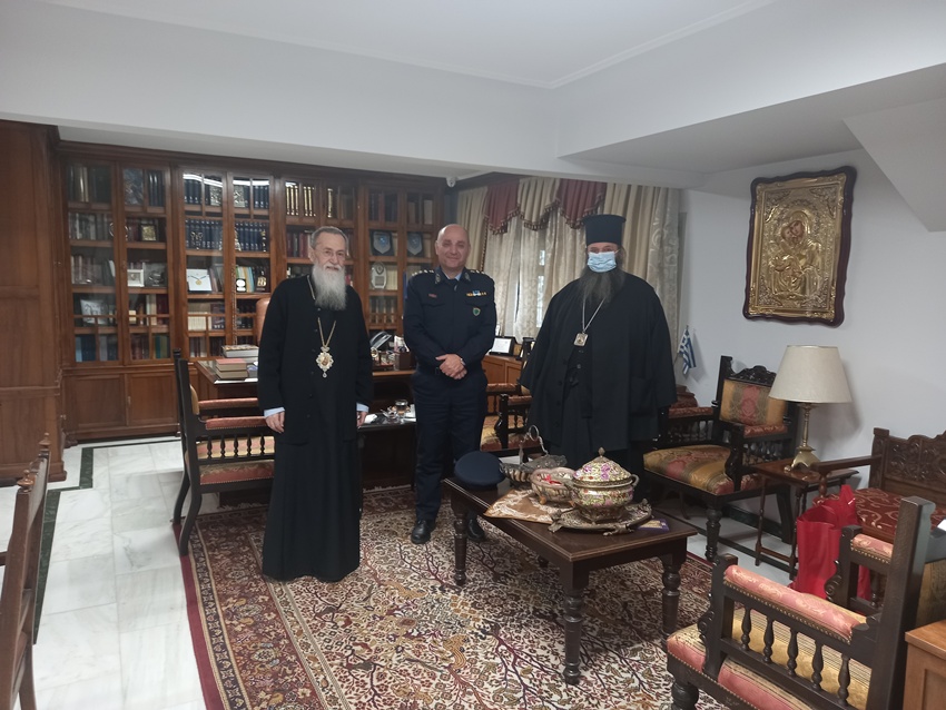Ο Σεβασμιώτατος Μητροπολίτης μας ευχαρίστησε τον κ. Αστυνομικό Διευθυντή για την ευγενική επίσκεψή του και του ευχήθηκε όπως Κύριος ο Θεός, δια πρεσβειών του Αποστόλου Παύλου, να τον ενισχύει και να τον δυναμώνει στο ομολογουμένως δύσκολο έργο του, προσφέροντας του και τις ανάλογες «ευλογίες».