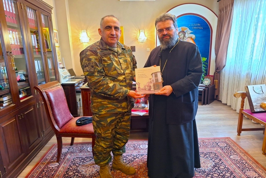Παρασκευή, 6η Φεβρουαρίου 2026, ὁ νέος Διοικητής τῆς 21ης ΤΘΤ, Ταξίαρχος κ. Χρῆστος Γουρδομιχάλης, ἐπισκέφθηκε ἐθιμοτυπικά τόν Σεβασμιώτατο στά Γραφεῖα τῆς Ἱερᾶς Μητροπόλεως, ἐν ὂψει τῆς ἀναλήψεως τῶν νέων καθηκόντων του καί ὑπέβαλε τὰ σεβάσματά του..
