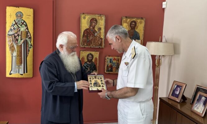 Τον Διοικητή της 4ης ΠΕ.ΔΙ.Λ.Σ. – ΕΛ.ΑΚΤ. (Περιφερειακή Διοίκηση Λιμενικού Σώματος), Αρχιπλοίαρχο Λ.Σ. Παπακωνσταντίνου Νικόλαο, υποδέχτηκε σήμερα στο γραφείο του στο Συνεδριακό Κέντρο Θεσσαλίας, ο Σεβασμιώτατος Μητροπολίτης Δημητριάδος και Αλμυρού κ.Ιγνάτιος.