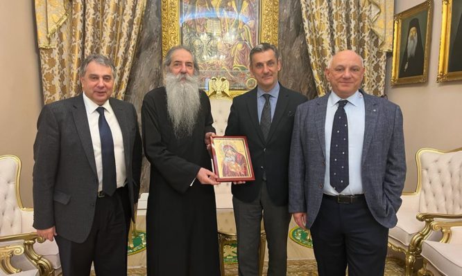 Ο νέος Ειδικός Γραμματέας της Αποκεντρωμένης Διοίκησης Αττικής κ.Γρηγόρης Ζαφειρόπουλος επισκέφθηκε σήμερα Παρασκευή 3 Μαρτίου 2023 στα γραφεία της Ιεράς Μητροπόλεως Πειραιώς στο «ΜΑΡΙΝΑΚΕΙΟΝ ΜΕΛΑΘΡΟΝ», τον Σεβασμιώτατο Μητροπολίτη Πειραιώς κ.Σεραφείμ, παρουσία του Προέδρου του Εμπορικού και Βιομηχανικού Επιμελητηρίου Πειραιά και Αντιπροέδρου του Γηροκομείου Πειραιώς κ.Βασίλη Κορκίδη και του Προέδρου του Ιατρικού Συλλόγου Πειραιά και μέλους της εφορείας του Ιδρύματος κ.Νίκου Πλατανησιώτη.