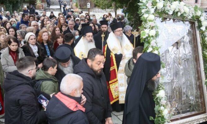 Αν λοιπόν προ Χριστού συνδέθηκε η Υπάτη με τη Λάρισα φανταστείτε τώρα μετά Χριστόν και μετά από τόσους Αγίους και μετά από την αποκάλυψη της αλήθειας και της αληθινής αγάπης εν Χριστώ, φανταστείτε πόσο πολύ περισσότερο συνδεόμαστε και πόσο πολύ περισσότερο έχουμε λόγους όχι απλώς να αγαπάμε ένας τον άλλον, αλλά να ταυτιζόμαστε και να θεωρούμε όπως είπατε ο ένας τον άλλον συγγενή πνευματικό, όχι μόνο πνευματικό στα πλαίσια της Ορθόδοξης Εκκλησίας, αλλά σε μια πνευματικότητα που φτάνει ακόμα και στην αρχαία ελληνική ιστορία. Συνεπώς οι δεσμοί είναι αδιατάρακτοι, είναι υπέρ της χιλιετίας και επομένως εμείς εδώ ήρθαμε σήμερα στους αδελφούς μας για να επαναλάβουμε αυτό το οποίο οι αιώνες έκαναν, το δέσιμο των δύο αυτών περιοχών και κομίσαμε ίσως τον πιο πολύτιμο θησαυρό μας, λέω ίσως το πιο πολύτιμο, γιατί έχουμε και τα λείψανα του Αγίου τα οποία δεν σας τα έχουμε φέρει, φέραμε μόνο την εικόνα. Όμως φέραμε μια εικόνα η οποία έχει μία σπουδαία ιστορία και η οποία βγαίνει για πρώτη φορά από την πόλη της Λάρισας. Βγήκε πρώτη φορά για να έρθει εδώ στο μοναστήρι αυτό που όχι τυχαία, όχι οπουδήποτε, όχι μόνο γιατί συνδέεται η εικόνα με τον Άγιο, αλλά διότι γνωρίζουμε και τη δική σας αγάπη προς τους Αγίους Σεβασμιώτατε Άγιε αδελφέ, αλλά και διότι έχουμε εμπιστοσύνη και προς τον Γέροντα και τους Πατέρες της Μονής. Σας γνωρίζουμε. Τον τρόπο με τον οποίο διαφυλάττουν κειμήλια αιώνων εδώ και τα οποία είναι παράδοση της αδελφότητας να στέκεται εδώ φρουρός όλων αυτών, έτσι ώστε οι αιώνες ότι έχουν να αφήσουν πίσω τους να υπάρχει εδώ και να μπορούν οι χριστιανοί να το βρίσκουν και να τον προσκυνάνε, βέβαια γνωρίζω ότι δεν φτάνουν οι χώροι της Μονής για να αναπτυχθούν όλα αυτά και εκτεθούν όμως ξέρω ότι οι πατέρες γνωρίζουν να τα προβάλλουν ιδίως στις μνήμες των Αγίων να βγάζουν τα λείψανα, να βγάζουν τις εικόνες και να τιμούν τους Αγίους μας κατά την τάξη της Εκκλησίας μας και επειδή αυτή η Μονή έχει αδιάκοπη ζωή από τον 15ο αιώνα συνεχούς μοναχικής παρουσίας και μάλιστα ικανών μοναχών και επειδή υπάρχουν και αυτοί οι δεσμοί αγάπης που υπάρχουν, είπαμε θα κάνουμε το τόλμημα και θα επιχειρήσουμε πρώτη φορά στην ιστορία της να βγει αυτή εικόνα η οποία έχει μια μοναδική επίσης ιστορία.