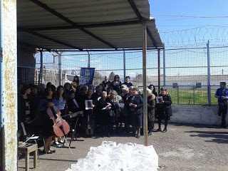 Τους επισκέπτες της φυλακής, τον π. Γερβάσιο και τη συνοδεία του, υποδέχτηκε ο Πρωτοπρεσβύτερος π. Θεόδωρος Μπατάκας, ως εκπρόσωπος της Τοπικής Εκκλησίας, της Μητροπόλεως Δημητριάδος και Αλμυρού και του Συλλόγου Συμπαραστάσεως Κρατουμένων Βόλου “Ο ΕΣΤΑΥΡΩΜΕΝΟΣ”. Στην προσλαλιά του ο Πρωτοπρεσβύτερος π. Θεόδωρος, καλωσόρισε τον γέροντα π. Γερβάσιο και την μεγάλη του συνοδεία, τον ευχαρίστησε για την πολύτιμη στήριξη που παρέχει 39 ολόκληρα χρόνια στους κρατουμένους της περιοχής μας και προσέφερε σ’ όλους τους παριστάμενους – κρατουμένους και μη – βιβλία εκ μέρους του Συλλόγου, ως αντίδωρο της αγάπης τους. Η γυναικεία χορωδία της αδελφότητος έψαλε χριστιανικούς ύμνους και ο π. Γερβάσιος ομίλησε προς τους ανήλικους κρατούμενους με λόγια πατρικά. Πριν την λήξη της εκδηλώσεως, ένας κρατούμενος ευχαρίστησε εκ μέρους των εγκλείστων τον γέροντα και του προσέφερε ένα αναμνηστικό και συμβολικό δώρο. “Ο Εσταυρωμένος” και οι εθελοντές του, συνεργάζονται με την διακονία αποφυλακίσεων της Ορθοδόξου Αδελφότητος “Η ΟΣΙΑ ΞΕΝΗ” και τον π. Γερβάσιο, αποκομίζοντας πολλά πνευματικά οφέλη, δεδομένου πως είναι αδελφά Εκκλησιαστικά Φιλανθρωπικά Σωματεία με έναν κοινό σκοπό: Να δοξάζεται ο Θεός και ωφελούνται οι άνθρωποι.
