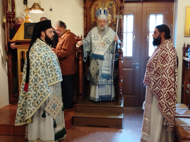 πλαισιούμενος από τον Πρωτοσυγκελλεύοντα της Ιεράς Μητροπόλεως, Αρχιμ. Δωρόθεο Βενετσανόπουλο, ο οποίος και κήρυξε τον θείο λόγο και τον οικείο Εφημέριο Πρωτοπρ. Θωμά Κυδωνιέα. Προ της Απολύσεως, ο Σεβασμιώτατος προέστη του 40νθημέρου Μνημοσύνου του αειμνήστου Νικήτα Τριανταφύλλου.