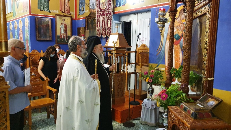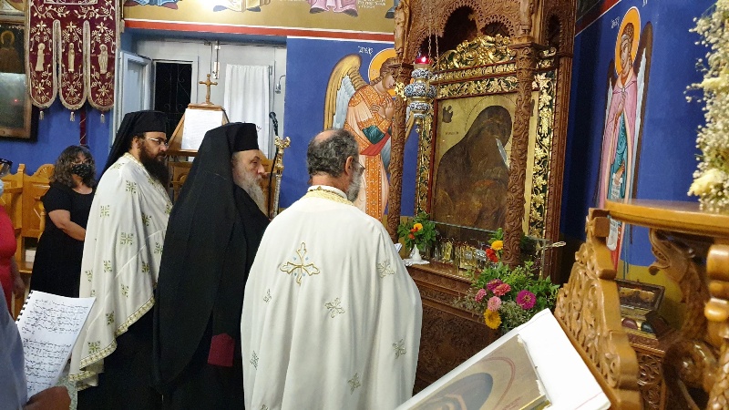 Στο τέλος της Ακολουθίας, ο Μητροπολίτης απηύθυνε ευχές προς τους εκκλησιαζομένους, εν όψει της εορτής της Κοιμήσεως της Υπεραγίας Θεοτόκου.