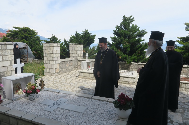 Ακολούθως κατ ‘ επιθυμίαν του αγίου Άκκρας, οι δύο Αρχιερείς μετέβησαν στην Ιερά Μονή Παναγίας Δαμάστας, όπου ο κ. Νάρκισσος προσεκύνησε την Ιερά Εικόνα της Παναγίας και ετέλεσε Αρχιερατικό τρισάγιο στο κοιμητήριο της Μονής επί του τάφου, όπου αναπαύεται η αείμνηστη Μαρία Πρωτοπαπά, μητέρα του Ποιμενάρχου μας.