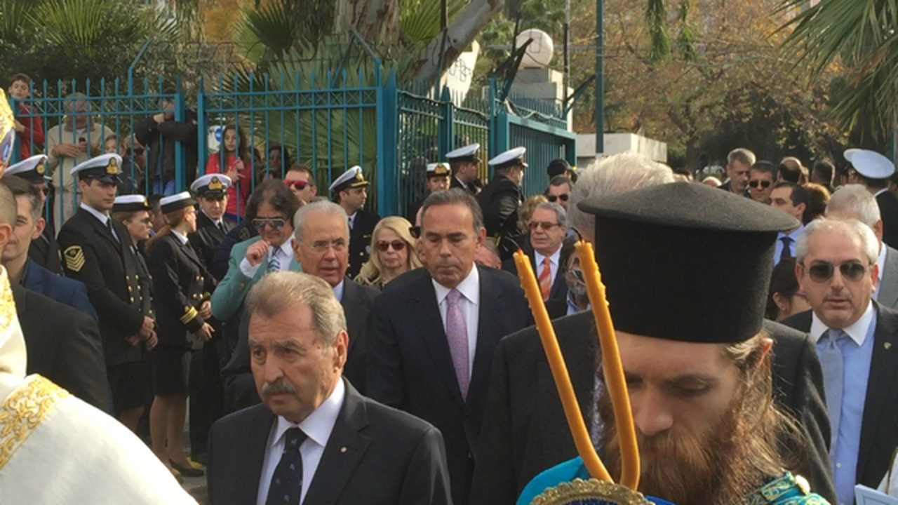 Την κυβέρνηση εκπροσώπησε ο υπουργός Ναυτιλίας κ. Θοδωρής Δρίτσας, ο οποίος αποδοκιμάστηκε από μέλη της Λαϊκής Ενότητας κατά την άφιξή του, ενώ μοναδικός πολιτικός αρχηγός που παρέστη στον καθαγιασμό των υδάτων στον Πειραιά ήταν ο πρόεδρος της Ένωσης Κεντρώων κ. Βασίλης Λεβέντης. Παρόντες, επίσης, ο κ. Δημήτρης Καμμένος από τους Ανεξάρτητους Έλληνες και ο κ. Ηλίας Κασιδιάρης από τη Χρυσή Αυγή.