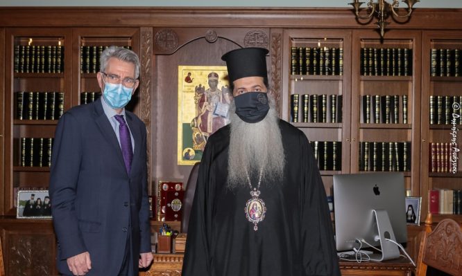 Τον Σεβασμιώτατο Μητροπολίτη Φθιώτιδος κ. Συμεών επισκέφθηκε σήμερα το πρωί στο γραφείο του στο Πνευματικό και Διοικητικό Κέντρο της Ιεράς Μητροπόλεως Φθιώτιδος ο Πρέσβης των Ηνωμένων Πολιτειών Αμερικής στην Ελλάδα κ. Geoffrey R. Pyatt .