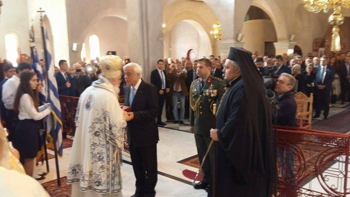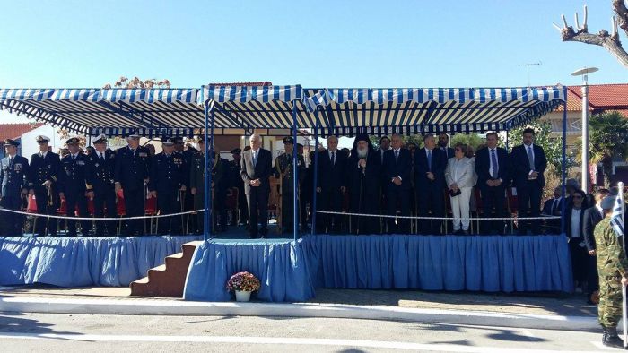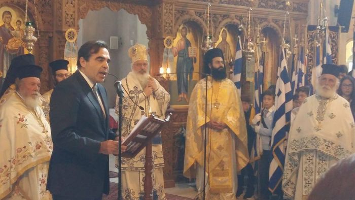 Στις 10.30 τελέστηκε Δοξολογία στον Ιερό Ναό Αγίου Γεωργίου Ν. Ποτίδαιας από τον Μητροπολίτη Κασσανδρείας κ.κ. Νικόδημο και στη συνέχεια εκφωνήθηκε ο πανηγυρικός της ημέρας, από τον επικεφαλής εκπρόσωπο Τύπου της Ευρωπαϊκής Επιτροπής, Μαργαρίτη Σχοινά.