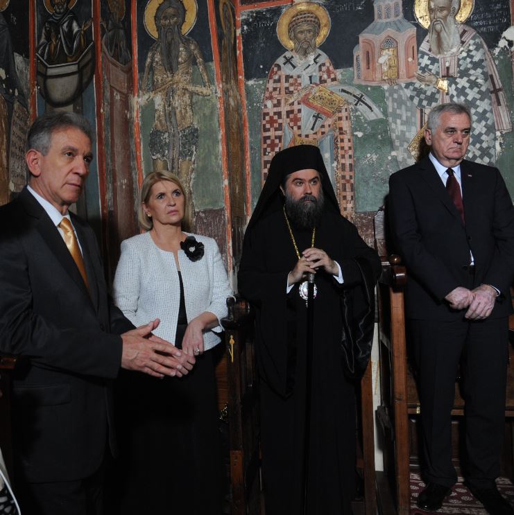 Ο Εξοχώτατος Πρόεδρος κ. Νίκολιτς ευχαρίστησε εγκαρδίως τον Σεβασμιώτατο για την υποδοχή, εξέφρασε τον θαυμασμό του για την πίστη, την ιστορία, τον πολιτισμό και τα μνημεία της περιοχής μας, ως ο βυζαντινός Ναός των Αγίων Θεοδώρων Σερρών και ετόνισε και εκείνος τους ισχυρούς δεσμούς πίστεως και ιστορίας που συνδέουν τους δύο λα-ούς μας. Ακολούθως προσέφερε στον Σεβ. Ποιμενάρχη Σερρών ένα πιστό αντίγραφο του περγαμηνού κώδικα του Σέρβου αυτοκράτορα Στεφάνου Δουσάν, μέρος του οποίου, ὀπως είπε, γράφτηκε από τον Σέρβο ηγεμόνα στην πόλη των Σερρών.