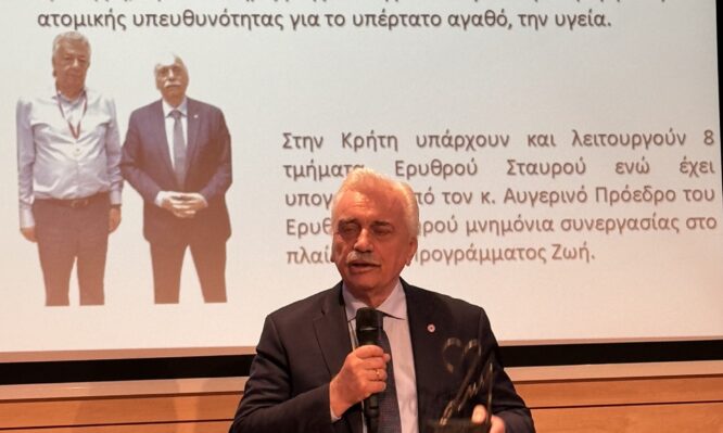 Την Τρίτη 12 Νοεμβρίου 2024 στο «1ο Φεστιβάλ Πρόληψης» που διοργανώθηκε από την Περιφέρεια Κρήτης στο Πολιτιστικό και Συνεδριακό Κέντρο Ηρακλείου, ετιμήθη ο Προέδρος του Ελληνικού Ερυθρού Σταυρού, Dr. Αντώνιος Αυγερινός, για την τεράστια συμβολή του Οργανισμού στην πρόληψη αλλά και στην υλοποίηση του προγράμματος «ΖΩΗ».