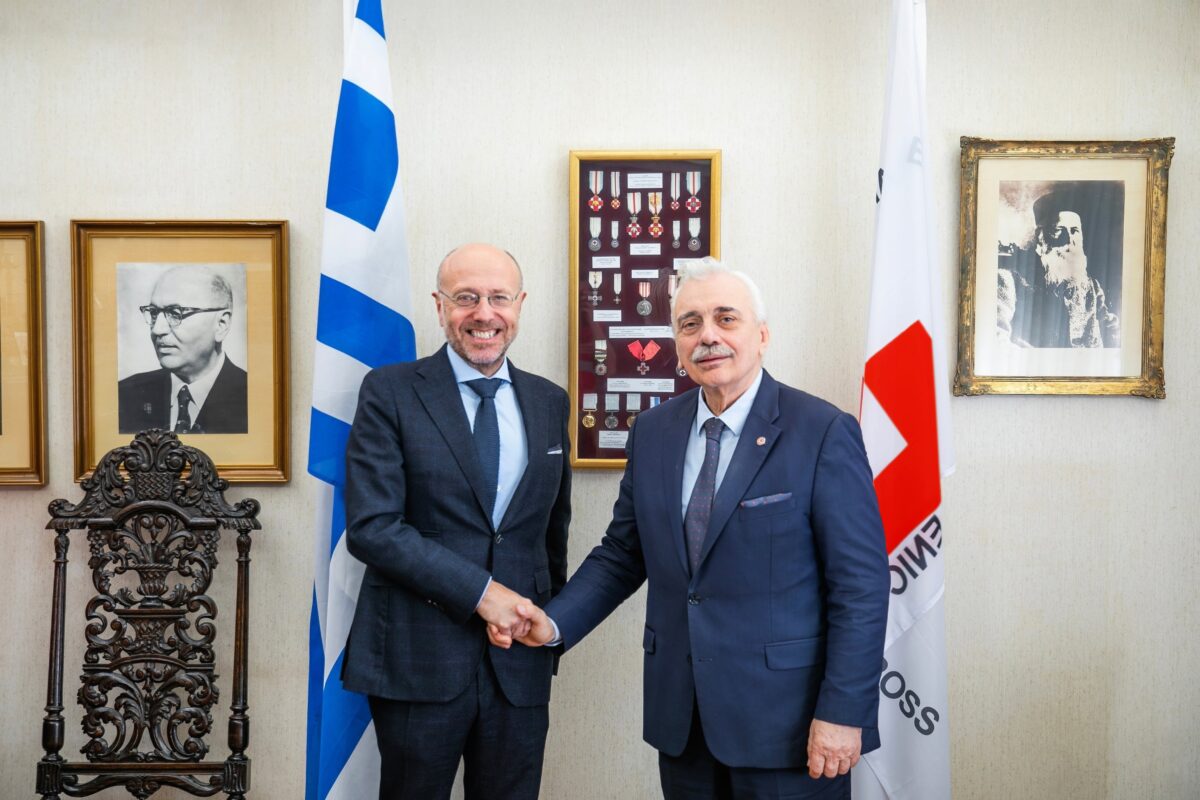 Σε ιδιαίτερα εγκάρδιο και εποικοδομητικό κλίμα πραγματοποιήθηκε συνάντηση του Προέδρου του Ελληνικού Ερυθρού Σταυρού (Ε.Ε.Σ.), Dr. Αντώνιου Αυγερινού, με τον Υφυπουργό Υγείας, κ. Δημήτρη Βαρτζόπουλο, στα Κεντρικά Γραφεία του Ε.Ε.Σ. στην Αθήνα.