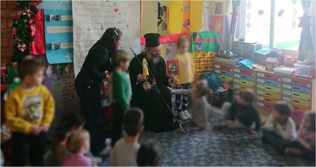 Επίσης, ο Μητροπολίτης κ. Πρόδρομος επισκέφθηκε το 4ο Νηπιαγωγείο Ρεθύμνου, όπου ευχήθηκε στα παιδιά για τις Εορτές και τους διένειμε μικρές Ιερές Εικόνες.