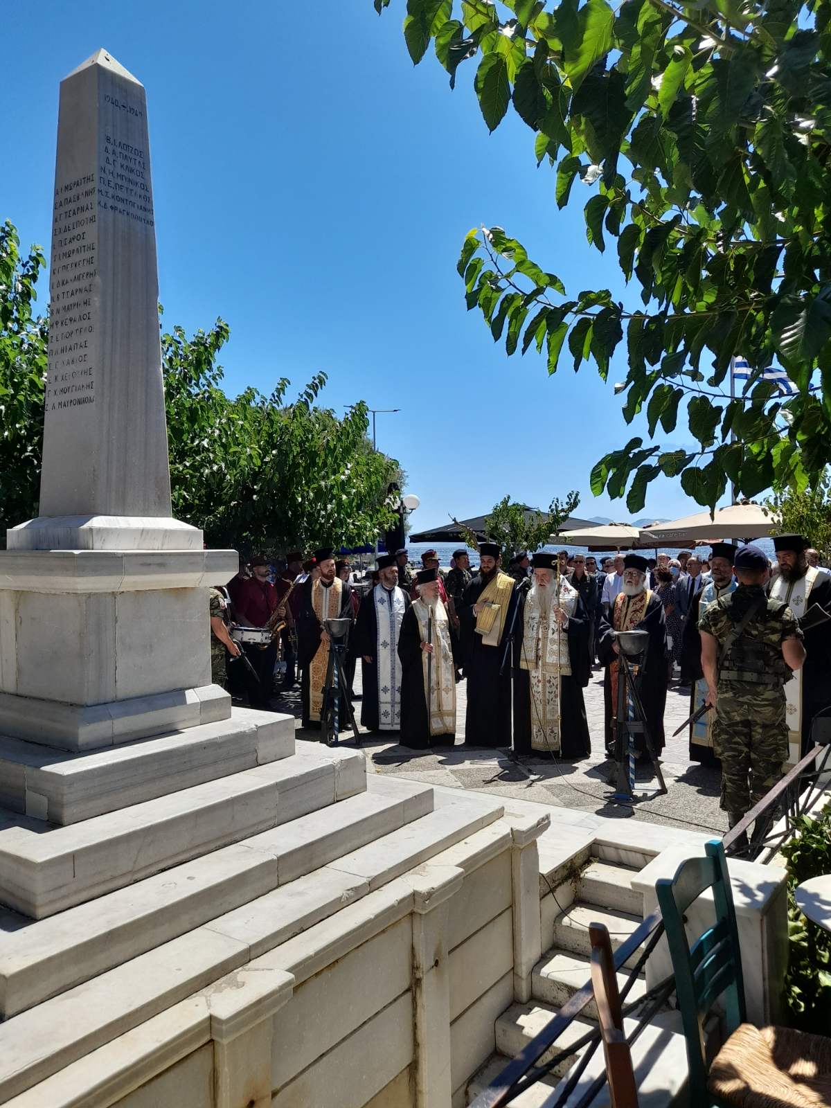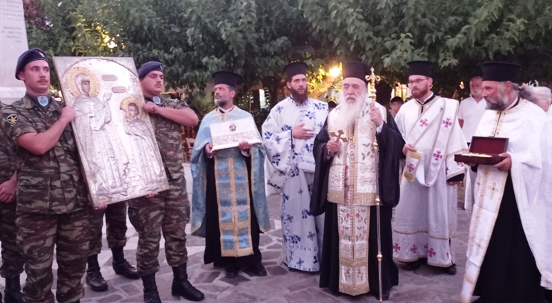 Το Σάββατο 16η Ιουλίου 2022 το πρωί χοροστάτησε εις την Θεία Λειτουργίαν εις την Ιεράν Μονήν Ζωοδόχου Πηγής Γλαρέδων/Λακέδων Ικαρίας, ετέλεσε ετήσιον Μνημόσυνον του αειμνήστου Ιερέως π. Ευαγγέλου Γλαρού εφημερίου επί πολλά έτη της ενορίας Αγίου Γρηγορίου Γλαρέδων και απένειμε το οφφίκιον του Πρωτοπρεσβυτέρου εις τον π. Παντελεήμονα Πούλον, Εφημέριον Αγίου Παντελεήμονος Αγίου Κηρύκου και άλλων κενών Ενοριών. Ο Σεβασμιώτατος το μεσημέρι μετέβη εις το Στρατόπεδον Αγίου Κηρύκου κομίζοντας προς προσκύνησιν το Ιερόν Λείψανον του Αγίου Μεγαλομάρτυρος Γεωργίου, Προστάτου του Ελληνικού Στρατού, τέλεσε Δέησιν και ομίλησε προς τους Αξιωματικούς, οπλίτας και το πολιτικόν προσωπικόν της Μονάδος. Το απόγευμα χοροστάτησε εις τον Αρχιερατικόν Εσπερινόν εις την Ιεράν Μονή Ευαγγελισμού της Θεοτόκου Λευκάδος (1775) ομίλησε για το πνευματικό κίνημα της Φιλοκαλικής αναγέννησης του 18ου αιώνος των Αγίων Κολυβάδων Πατέρων.