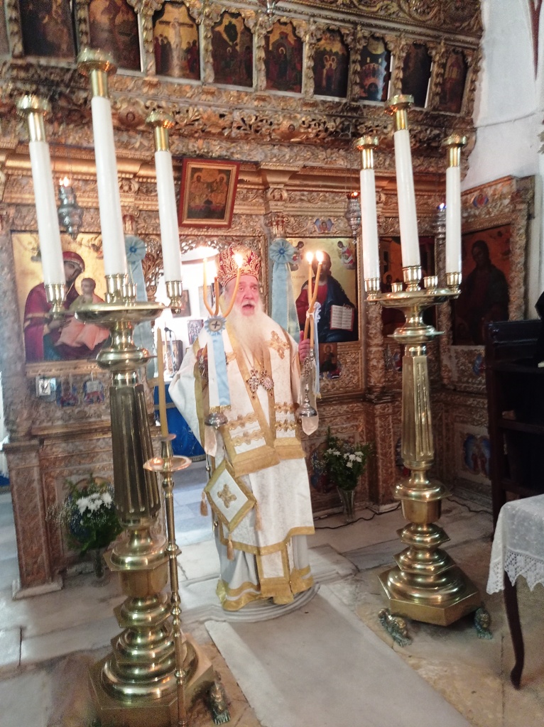 Τό ἀπόγευμα τῆς Τρίτης ἐπί τῇ ἱερᾷ μνήμῃ τῆς Ἁγίας ἐνδόξου Μεγαλομάρτυρος Μαρίνης καί τῆς ἀνακομιδῆς τῶν Ἱερῶν Λειψάνων τῶν Ἁγίων Κολλυβάδων Πατέρων Γρηγορίου τοῦ Γραβανοῦ καί Σισώη τοῦ Πνευματικοῦ, Χοροστάτησε στόν Πανηγυρικό Ἀρχιερατικό Ἑσπερινό στήν Ἱ. Μ. Εὐαγγελισμοῦ τῆς Θεοτόκου Λευκάδος Ἰκαρίας, ὃπου ἐτελέσθη ὑπαιθρίως, κήρυξε τόν θ. λόγο καί ἀναφέρθηκε τόσο στόν βίο τῆς Ἁγίας Μεγαλομάρτυρος Μαρίνης ὃσο καί στό γεγονός τῆς εὐρέσεως τῶν ἱερῶν λειψάνων τῶν Ἁγίων αύτῶν Κολλυβάδων πατέρων καί στό φιλοκαλικό ἀναγεννησιακό ἒργο πού επετέλασαν στά νησιά μας καί ἰδιαίτερα στήν Ἰκαρία.