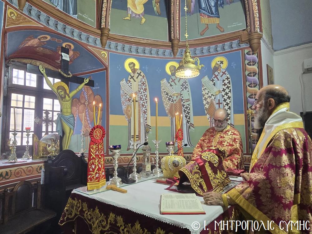 Την 1η Δεκεμβρίου 2024, Κυριακή ΙΔ΄ Λουκᾶ, ὁ Σεβ. Μητροπολίτης μας κ. Χρυσόστομος χοροστάτησε εἰς τόν Ὄρθρο, τέλεσε τόν Ἁγιασμό ἐπί τῇ 1η τοῦ μηνός καθώς καί τήν Θεία Λειτουργία εἰς τόν Μητροπολιτικό Ἱ. Ναό τοῦ Τιμίου Προδρόμου Σύμης, μέ συλλειτουργό του τόν Πρωτοπρ. π. Στέφανο Μακρῆ, Ἐφημέριο τοῦ Ναοῦ καί Γεν. Ἀρχιερατικό Ἐπίτροπο. Τό ἱ. Ἀναλόγιο διακόνησαν ὁ Πρωτοψάλτης τοῦ Ἱ. Ναοῦ κ. Δημοσθένης Γιανναράς μετά τοῦ υἱοῦ του Μερκουρίου καί τοῦ κ. Ἐλευθερίου Ξηράκη.
