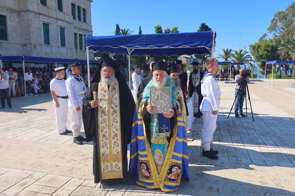 Ύστερα από πρόσκληση του Αρχηγού Λιμενικού Σώματος – Ελληνικής Ακτοφυλακής, Αντιναυάρχου Λ.Σ. Γεωργίου Αλεξανδράκη, και με την αδελφική άδεια του Σεβασμιωτάτου Μητροπολίτου Πειραιώς κ. Σεραφείμ, ο Σεβασμιώτατος Σύρου κ. Δωρόθεος Β’ παρέστη στην τελετή ορκωμοσίας των είκοσι εννέα (29) Νέων Σημαιοφόρων Λ.Σ.-ΕΛ.ΑΚΤ. και των Νέων Σημαιοφόρων του Πολεμικού Ναυτικού, η οποία , πραγματοποιήθηκε στις εγκαταστάσεις της Σχολής Ναυτικών Δοκίμων, με την παρουσία της Εξοχωτάτης Προέδρου της Δημοκρατίας κας Κατερίνας Σακελλαροπούλου.