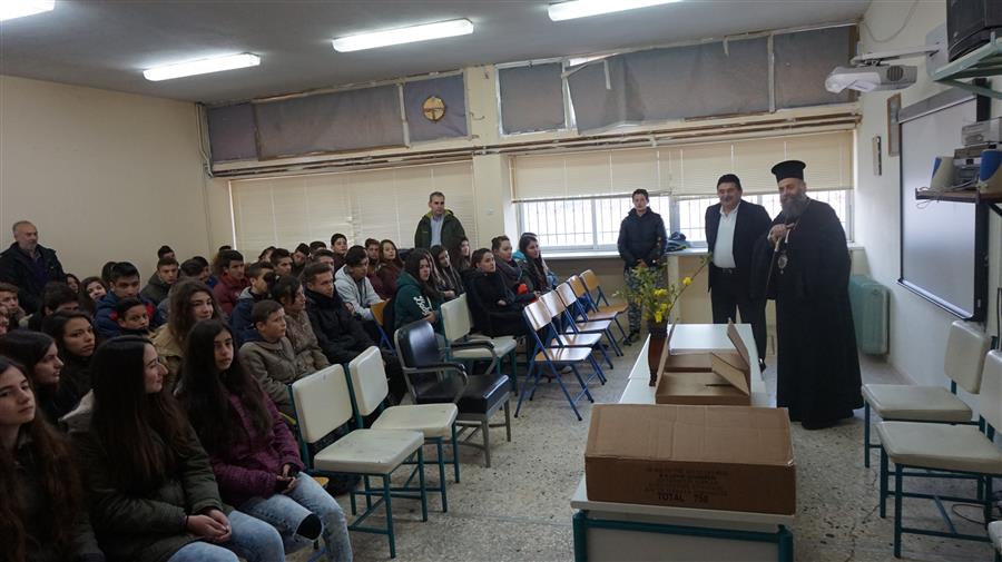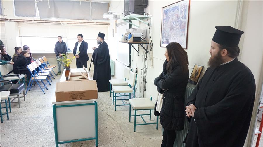 Ο Διευθυντής του ως άνω Σχολικού Συγκροτήματος κ. Χρήστος Μόρφος επεφύλαξε μαζί με το λοιπό εκπαιδευτικό προσωπικό μια θερμή και εγκάρδια υποδοχή στον Μητροπολίτη Θεσσαλιώτιδος και Φαναριοφερσάλων κ. Τιμόθεο.