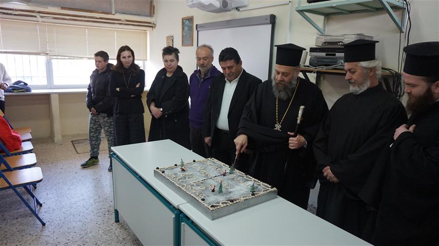 Ο Μητροπολίτης μας αφού ευλόγησε και έκοψε την πρωτοχρονιάτικη βασιλόπιτα, αντήλλαξε ευχές και είχε μαζί τους μία ευχάριστη επικοινωνία.