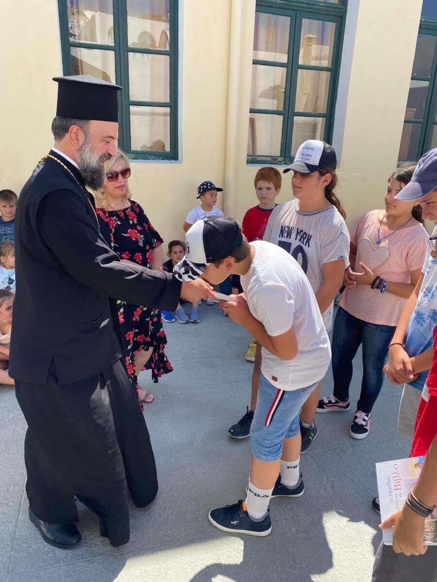 Εν συνεχεία συναντήθηκε με τους μαθητές, συνομίλησε μαζί τους, τους έδωκε την ευλογία του και τους προσέφερε ως δώρο μία εικονογραφημένη Βίβλο έτσι ώστε να την έχουν συντροφιά κατά τις καλοκαιρινές τους διακοπές.