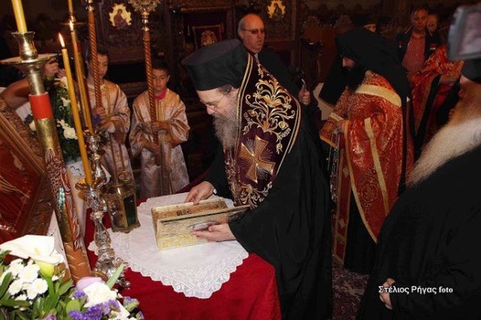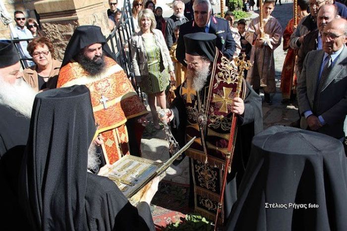 Τον πολύτιμο αυτό θησαυρό υπεδέχθη ο Ιερός Κλήρος με επικεφαλής τον Σεβασμιώτατο Μητροπολίτη κ. Θεόκλητο και ο ευλαβής Λαός της Αρναίας και των περιχώρων, μαζί με τους άρχοντες του τόπου. Διεκρίναμε τον Αντιδήμαρχο Αριστοτέλη κ. Χαράλαμπο Λαζαρίδη, τον τέως Δήμαρχο Αριστοτέλη κ. Χρήστο Πάχτα, τον αρναιώτη Δήμαρχο Πολυγύρου κ. Αστέριο Ζωγράφο, τον Πρόεδρο της Δημοτικής Κοινότητος Αρναίας κ. Γεώργιο Διαμαντούδη, την Περιφερειακή Σύμβουλο Χαλκιδικής κ. Κατερίνα Ζωγράφου, τον Αστυνομικό Διευθυντή Χαλκιδικής Ταξίαρχο κ. Θεολόγο Τζουμαΐλη και πολλούς Δημοτικούς και Τοπικούς Συμβούλους.