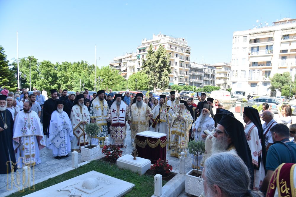 Κατόπιν ευγενούς προσκλήσεως του Παναγιωτάτου Μητροπολίτου Θεσσαλονίκης κ. Ανθίμου, ο οποίος παρέστη συμπροσευχόμενος στο Ιερό Βήμα, στο Πολυαρχιερατικό Συλλείτουργο συμμετείχαν Αρχιερείς που έλαβαν την Ιερωσύνη ή την Αρχιερωσύνη από τα τίμια χέρια του μακαριστού Ιεράρχου.