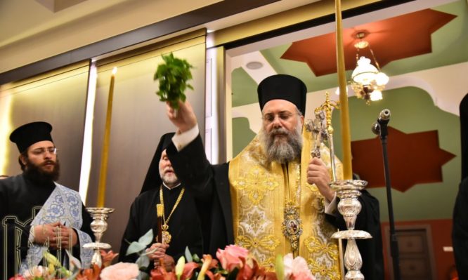 Νωρίτερα τελέστηκε Αρχιερατική Θεία Λειτουργία, της οποίας προέστη ο Μητροπολίτης Τρίκκης, Γαρδικίου και Πύλης κ. Χρυσόστομος, ο οποίος βρίσκεται στη Θεσσαλονίκη για τον εορτασμό της Αγίας Ελένης της Σινωπίτιδος, Ιερό Παρεκκλήσιο της οποίας λειτουργεί στον Ναό της Αγίας Μαρίνας.