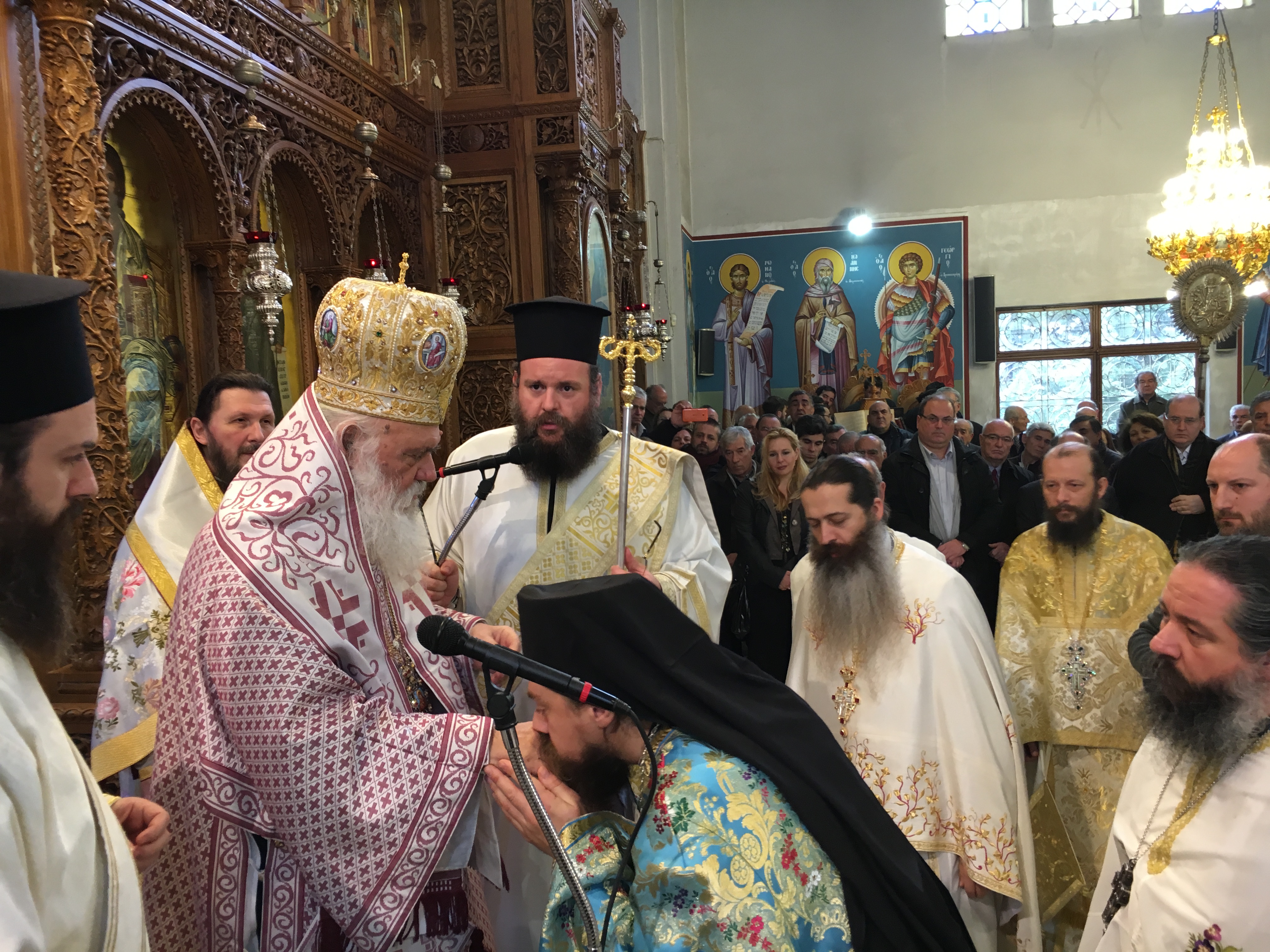 Στη συνέχεια αναφέρθηκε στον νεοχειροτονηθέντα, τον οποίο γνωρίζει από παιδί και επεσήμανε πως «σήμερα απλώνω το χέρι μου ελεύθερα, αγαπητικά και πιστεύω και επιτυχημένα».