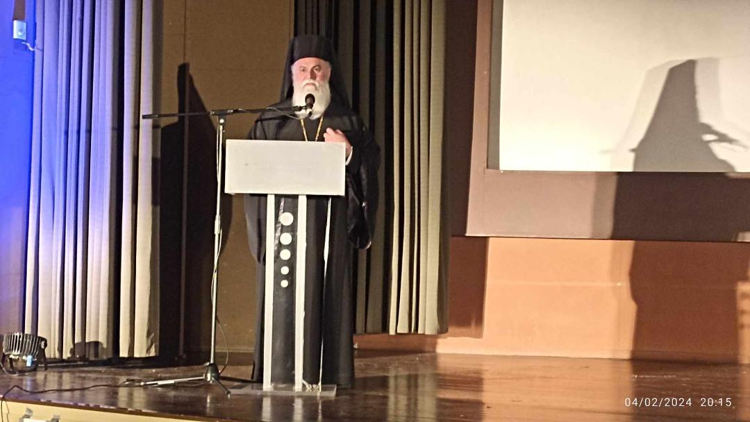 Ο Σεβασμιώτατος, αφού ευχαρίστησε θερμά τις δύο ομιλήτριες για τις άκρως διαφωτιστικές και τεκμηριωμένες εισηγήσεις τους, με συνοχή ψυχής ανέφερε: «Ο Θεός να μας ελεήσει. Θα πρέπει να κάνουμε καθημερινή πράξη την μονολόγιστη προσευχή «Κύριε Ιησού Χριστέ ελέησόν με», όχι μόνον εμάς, αλλά και ολόκληρο τον κόσμο. Αυτή η ισοπέδωση της πατρίδας μας, της κοινωνίας μας, της οικογένειας έχει αρχίσει εδώ και πολλά χρόνια χωρίς εμείς να το αντιληφθούμε. Θα πρέπει, λοιπόν, όλοι μας να αντισταθούμε, να αγωνιστούμε και να αμυνθούμε σε όλα αυτά που θα νομοθετηθούν σε λίγο. Και η άμυνα η δική μας είναι η διαρκής ενημέρωση, είναι η φωνή μας, είναι εν τέλει η θερμή προς τον Θεό προσευχή. Η άμυνα των γονέων είναι να συμβουλεύουν τα παιδιά τους ότι όλα αυτά που σε λίγο θα νομοθετηθούν είναι αντίθετα με τον νόμο του Θεού. Γι’ αυτό η Εκκλησία επαναστατεί. Διότι βλέπει ξεκάθαρα τα θλιβερά που θα ακολουθήσουν τη νομοθέτηση του γάμου των ομοφυλοφίλων, που είναι η θέσπιση της πολυγαμίας, της κτηνοβασίας και τέλος της ευθανασίας.