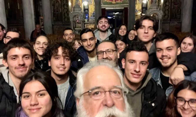 Ο Δημητριάδος Ιγνάτιος με φοιτητές του Πανεπιστημίου Θεσσαλίας