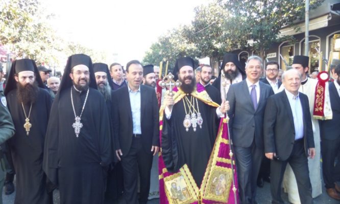 Ἐπιτρέψατέ μου νά εὐχαριστήσω αὐτήν τήν στιγμή ἰδιαιτέρως τόν Μακαριώτατο Ἁρχιεπίσκοπο Ἀθηνῶν καί πάσης Ἑλλάδος κ. κ. Ἱερώνυμο, τόν καί τοποτηρητή διατελέσαντα τῆς Ἱερᾶς Μητροπόλεώς μας, ὁ ὁποῖος οἰακοστροφεῖ σοφά, ὅπου χρειάζεται, δυναμικά  καί μέ ταπεινό φρόνημα  τήν Ἁγιωτάτη Ἐκκλησία τῆς Ἑλλάδος. Συνεχῶς μᾶς διδάσκει μέ τήν σεμνότητα, τήν ἀγάπη καί τήν εὐγένεια τῆς καρδιᾶς του. Μακαριώτατε, θά ἔχετε πάντοτε τήν βαθυτάτη εὐγνωμοσύνη μου γιά τήν στήριξή σας πρός τό πρόσωπό μου, ὅπως ἐπίσης καί τήν συμπόρευση ἀπό ἐμέ τόν ἐλάχιστο στά ὅσα σκέφτεστε, ἐμπνέετε καί πράττετε γιά τήν Ἐκκλησία μας.