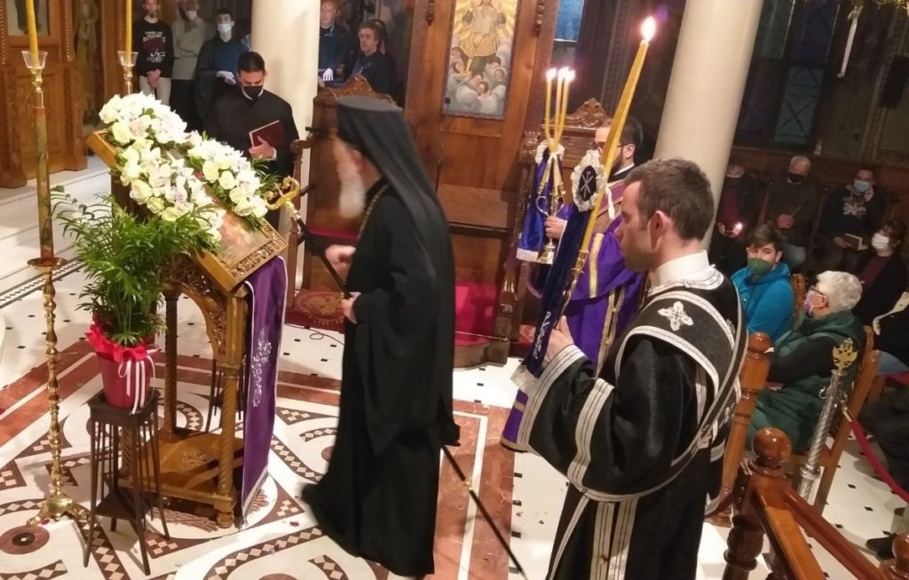 Το εσπέρας της Μ. Τρίτης (Όρθρος Μ. Τετάρτης), ο Σεβασμιώτατος χοροστάτησε στον Ι. Ναό Αγ. Νικολάου Χαλκίδος πλαισιούμενος από τον Προϊστάμενο της Ενορίας Πρωτοπρεσβ. Ηλία Αγιαννίτη και τον Διάκ. Σταύρο Καλαφάτη και ψαλλάντων θαυμάσια του Πρωτοψάλτου της Ενορίας κ. Σπυρίδωνος Σιμιτζή και του Λαμπαδαρίου και Διευθυντού της Σχολής Βυζαντινής Μουσικής της Ι. Μητροπόλεως κ. Δήμου Τσίμπου με τη συνοδεία χορωδών μαθητών τους.