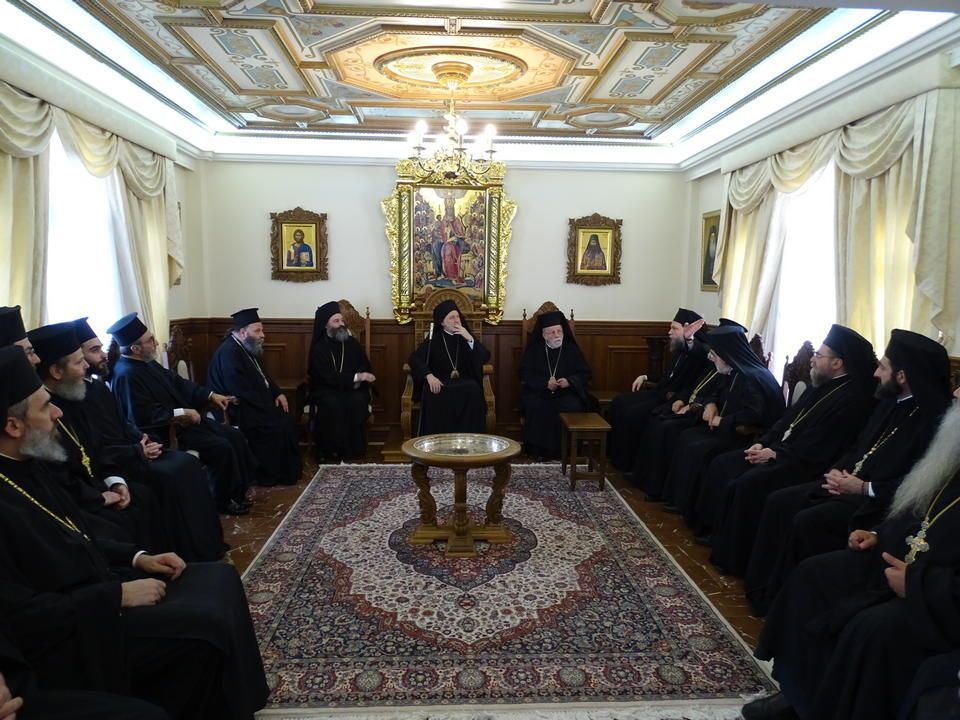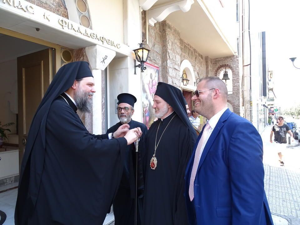 Ο Σεβασμιώτατος Μητροπολίτης Νέας Ιωνίας και Φιλαδελφείας κ. Γαβριήλ επεφύλαξε λαμπρή υποδοχή στους τέσσερις Αρχιερείς και τους καλωσόρισε με θερμά λόγια στην έδρα της προσφυγικής Ιεράς Μητροπόλεως.