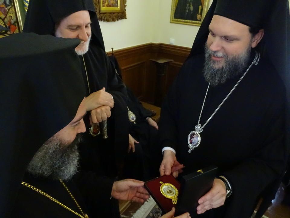 Ο Σεβασμιώτατος ως ένδειξη ευγνωμοσύνης, αγάπης και τιμής δώρισε στον κ. Ελπιδοφόρο ένα αρχιερατικό εγκόλπιο, ευχόμενος ο Θεός να του δίνει υγεία και δύναμη στη νέα διακονία που του εμπιστεύθηκε η Πρωτόθρονη Εκκλησία.